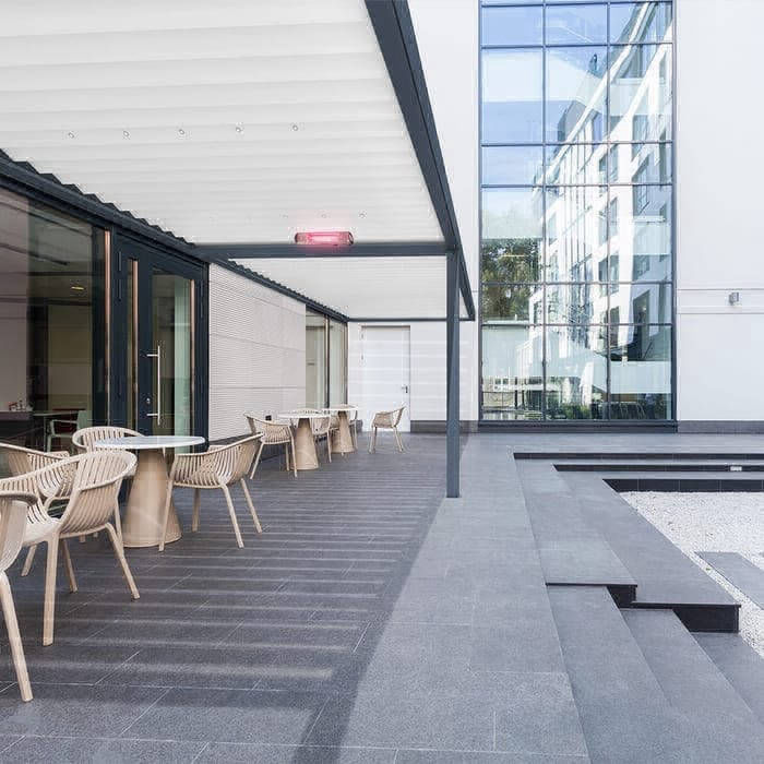 Ihre verdeckt liegende Entwässerung, ihre Korrosionsbeständigkeit und pflegeleichte, pulverbeschichte Oberfläche machen sie zu einem edlen und hochwertigen Blickfang.